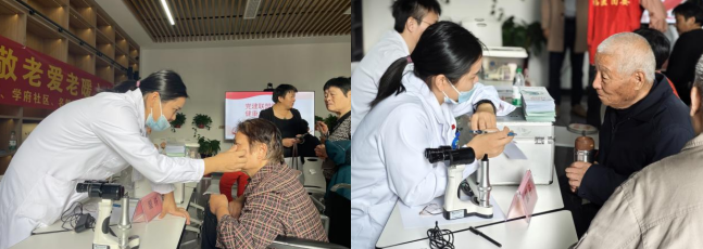 义诊活动主要包括测量血压、体检报告解读、日常用药指导、眼科检查、老年康复等五个健康咨询项目。在活动现场,医务人员给前来的老年人测量血压并登记个人信息,并为他们讲解普及关于白内障、糖尿病、高血压等相关的健康知识,发放相关健康知识宣传册,还为老人们提供一对一的健康咨询和健康指导等。