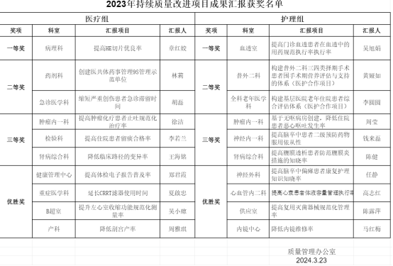 医院将选取优秀项目参加浙江省品管比赛。 后续医院相关职能部门对2024年各科选题进行讨论,继续由院级辅导员进行一对一指导,目的是把项目做实做出成效。同时希望在全院范围内通过CQI项目的推广来影响每一位临医人,强化全员参与医院质量管理的理念,这不仅是全面提高质量管理的有效手段,也是自下而上不断提升医院品质和文化的行之有效的方法。