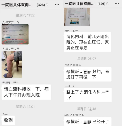 这是区第一人民医院医共体双向转诊群内病人转诊时的对接信息。自该群建立以来,像这样对接上转进一步治疗的患者数不胜数。