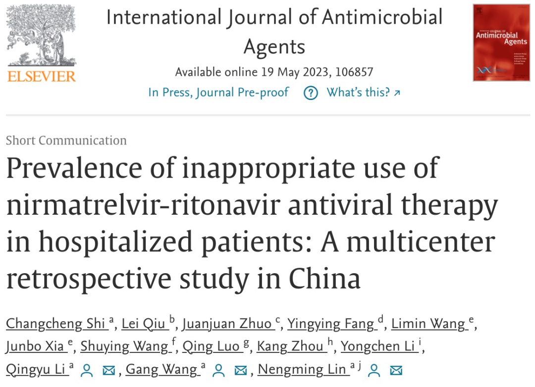 2023年5月,International Journal of Antimicrobial Agents(IF:15.44)在线发表题为“Prevalence of inappropriate use of nirmatrelvir-ritonavir antiviral therapy in hospitalized patients: A multicenter retrospective study in China”的论文,该杂志影响因子为IF:15.44。杭州市临安区第一人民医院药事管理办公室鲍红荣团队作为本次多中心研究的主要参与者,为本文二作。这也是我院首次以主要完成单位(排名第二)在该杂志发表论文。