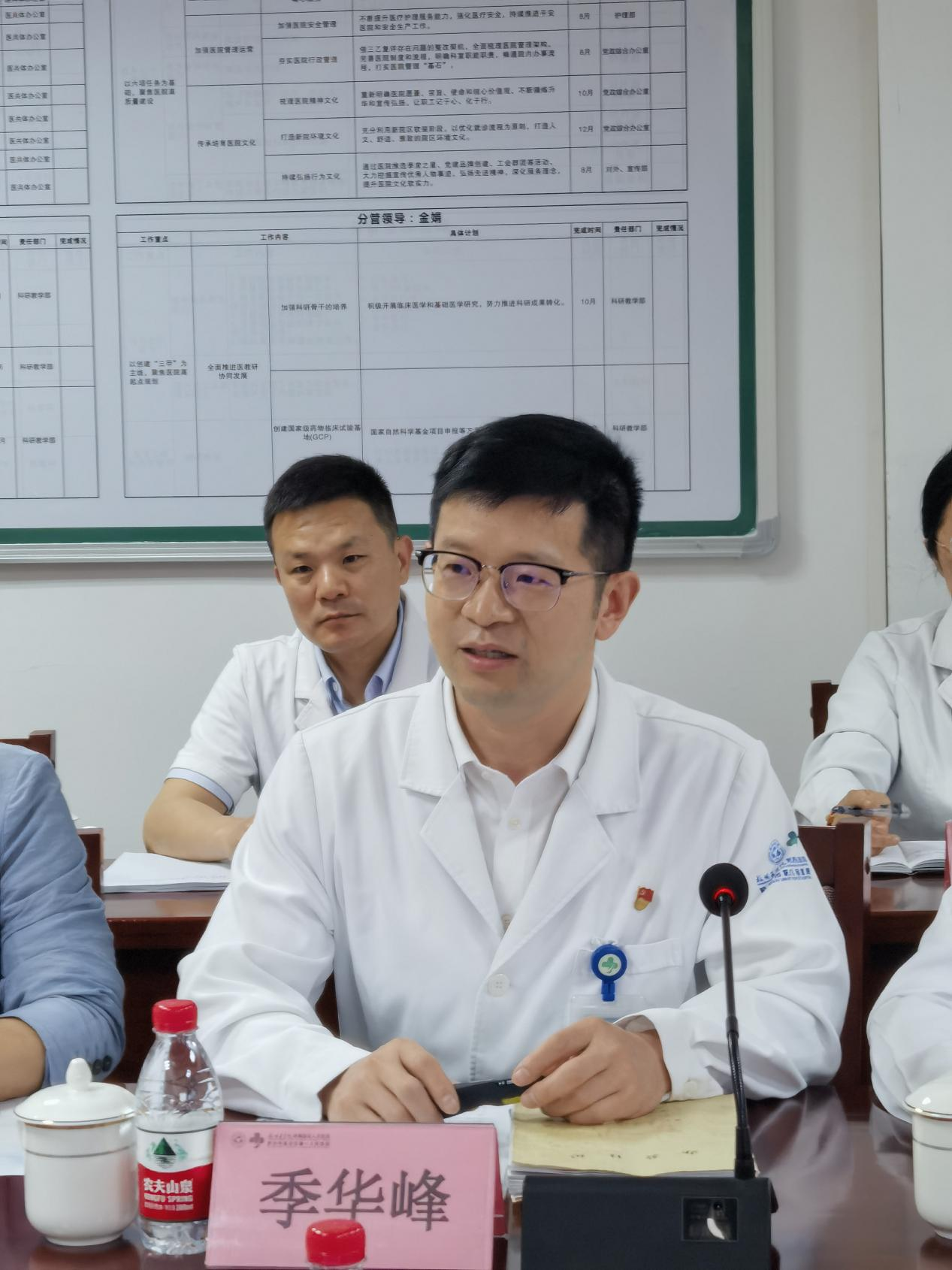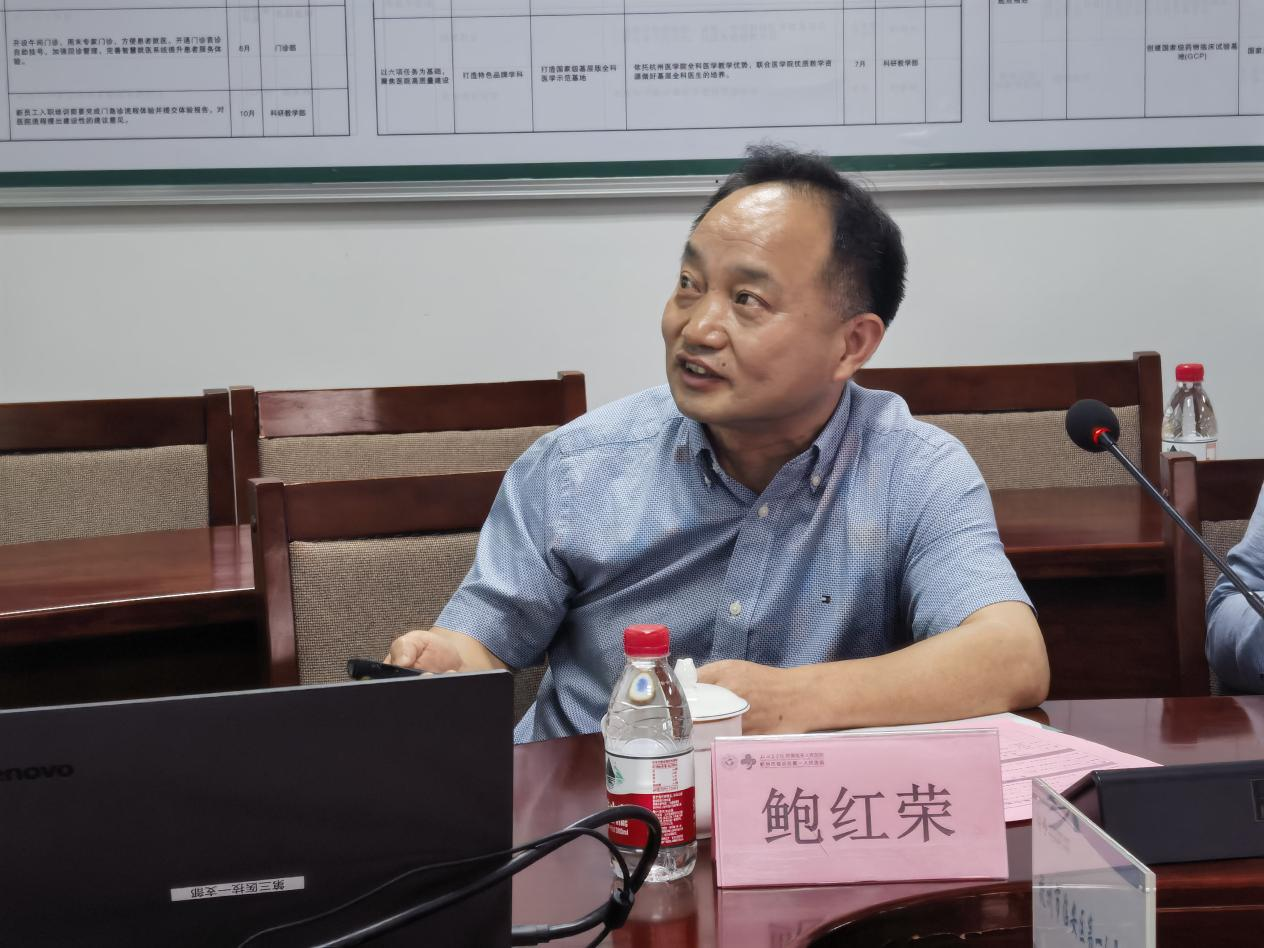 临安区第一人民医院党委副书记、副院长季华峰首先感谢了各位专家对我院一如既往的关心和支持,我院医共体的药事工作在鲍主任、毛主任管理下,在整个医院的重视下,基础工作非常扎实并且不断进步,也在等级医院复评中取得了较好的成绩,药师的地位不断地提高。希望三位专家在现场把把脉,让我院医共体可以更好对药事管理工作进行持续质量改进,更好的服务当地老百姓。最后对三位专家的指导检查表示再次的感谢,我们将在检查中做好记录,检查后进行整改、反馈,某个医共体单位发现的问题,在其他医共体成员单位也要以此为戒,举一反三。