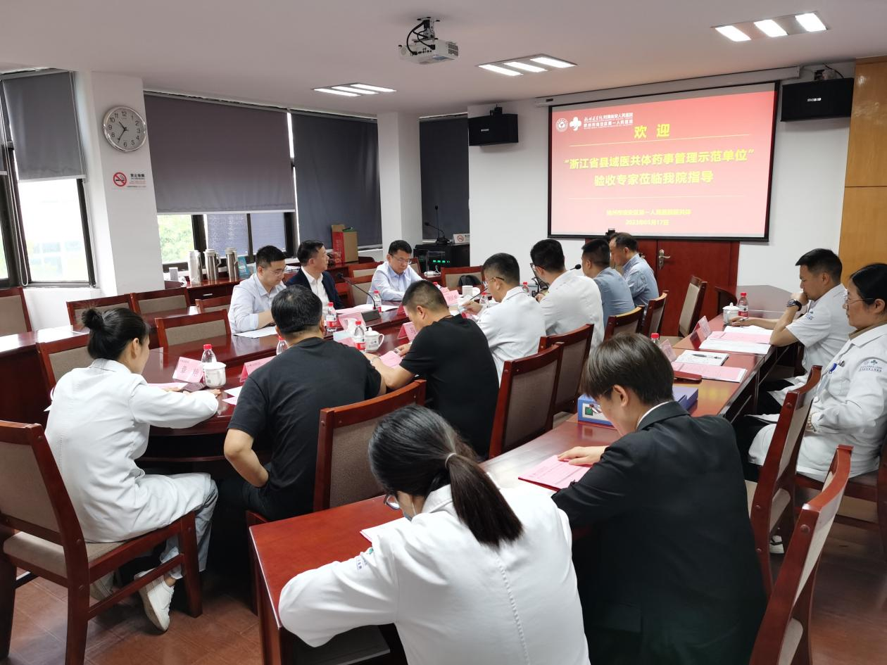 为配合我省全面推进基层县域医共体建设、提升基层县域医共体药事管理同质化水平,增强基层药学人员参与药事管理创新意识,5月17日,浙江省医院药事管理质控中心委派杭州市第一人民医院林能明副院长、浙江大学附属第一医院药学部饶跃峰副主任、浙江大学附属第一医院药学部中心药房组长滕天立一行三位专家莅临我院进行浙江省县域医共体药事管理示范单位验收。