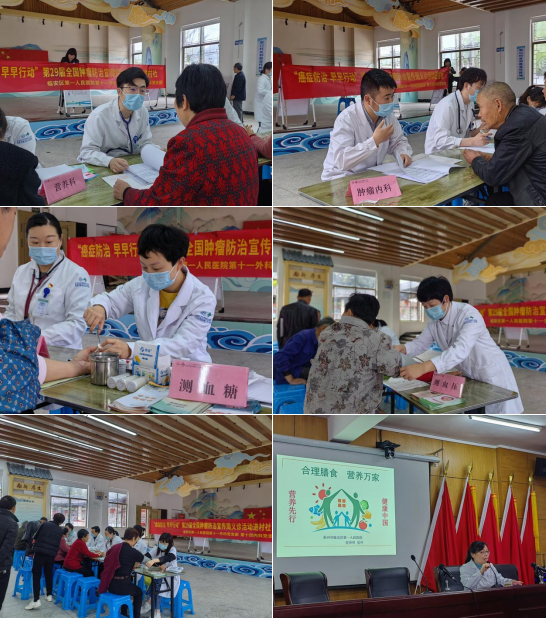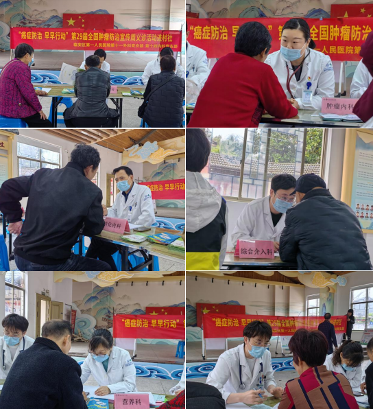 4月14日,临安一院肿瘤内科联合消化内科、综合介入科、胃肠外科、胸外科、营养科等在临安区板桥镇秋口村共同开展了肿瘤防治宣传义诊进村社活动,通过走进基层,服务群众,提高公众自身的防癌意识和健康素养,践行健康的生活方式。