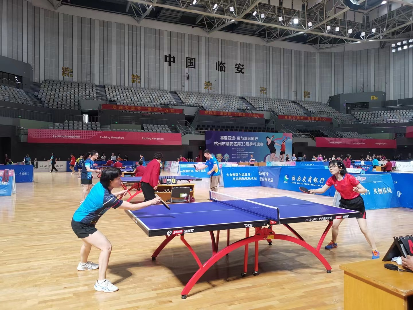 2023年4月15日,区第33届乒乓球赛在临安文体中心拉开序幕。来自街道办事处、机关单位,俱乐部等57支代表队220余名运动员参加比赛。我院组建男女2支队伍共7人参加此次比赛。