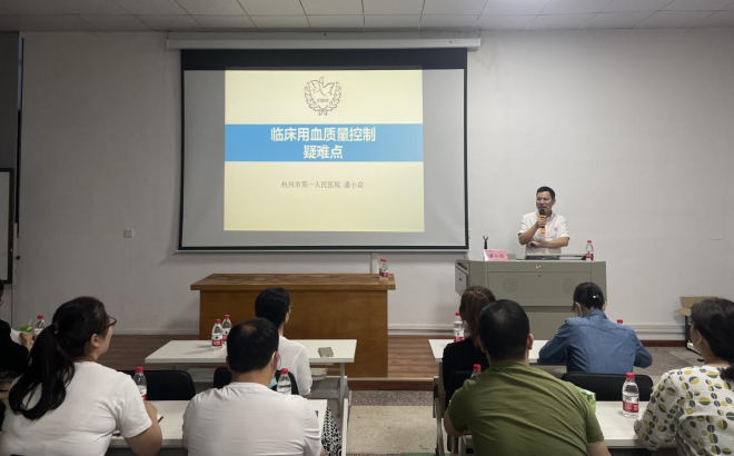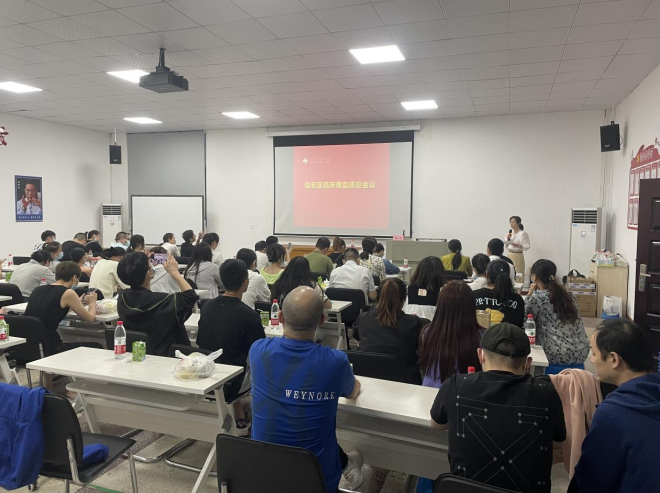 杭州市临床用血质控中心常务副主任、杭州市第一人民医院输血科主任潘小良,临安区8家区属医疗机构的医务科及血库负责人,相关工作人员和部分临床医生参加会议。