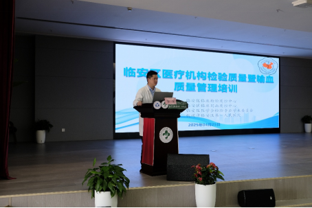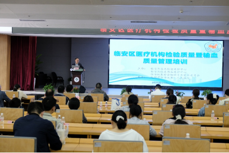 医院党委委员、纪检书记徐俊致辞。他表示,期待通过本次培训逐步提升检验人员的业务水平和检验能力,从而稳步提高临安区检验和输血医疗质量。