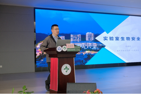 检验科副主任吴建荣讲解了《实验室生物安全》,内容包括生物安全基本概述、实验室生物安全分级、生物安全防护基本原则以及风险评估四个方面。