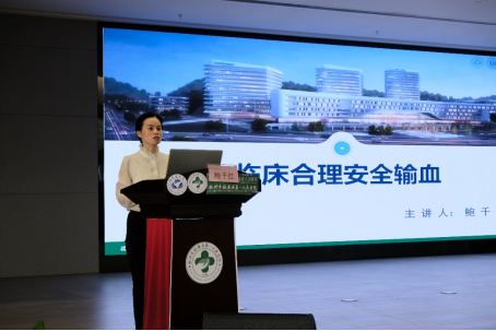 检验科副主任鲍千红讲解了《临床合理安全输血》,对临床输血全流程进行了详细的讲解,通过各个环节的合理把关,加强临床合理用血以及提高临床用血安全。
