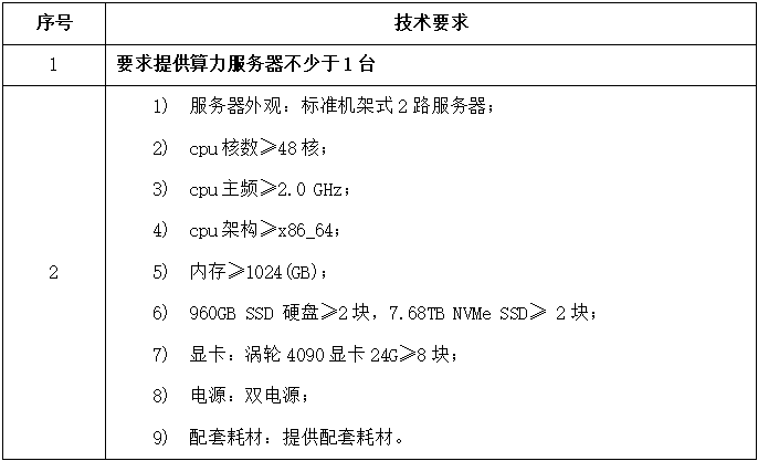 因人工智能业务需要,我院拟对租赁云算力服务器(含网络专线)项目进行采购调研。