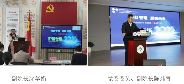 赛事采取医疗与护理双轨并行模式,分别于11日、12日举行专场竞赛。一共有76个项目参与此次比赛,其中医疗组41项(包含行政后勤1项)、护理组35项,全面覆盖临床路径优化、院感防控、智慧医疗等关键领域。副院长沈华娟和党委委员、副院长陈炜青分别在护理组和医疗组的赛前做出要求和指示。