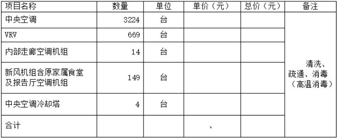 我院拟对医院中央空调、vrv、空调机组、新风机组末端及冷却塔清洗维保进行调研。