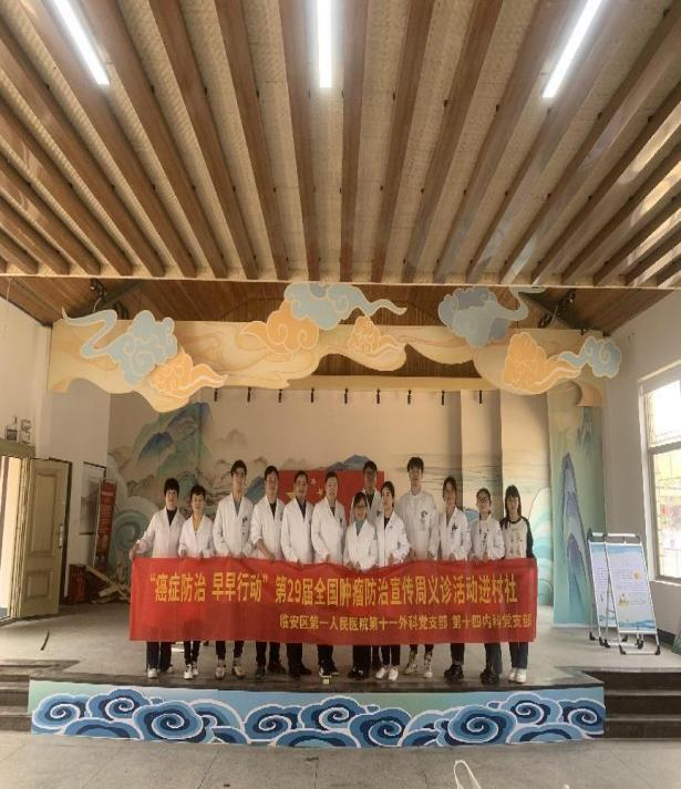 为深入贯彻党的二十大报告中“推进健康中国建设,把保障人民健康放在优先发展的战略位置”的精神,增强老百姓肿瘤防治意识,2023年4月14日,时值第29个全国肿瘤防治宣传周之际,临安区第一人民医院第十四内科党支部联合第十一外科党支部走进板桥镇秋口村开展以“癌症防治 早早行动”为主题的医疗服务进村社义诊活动。