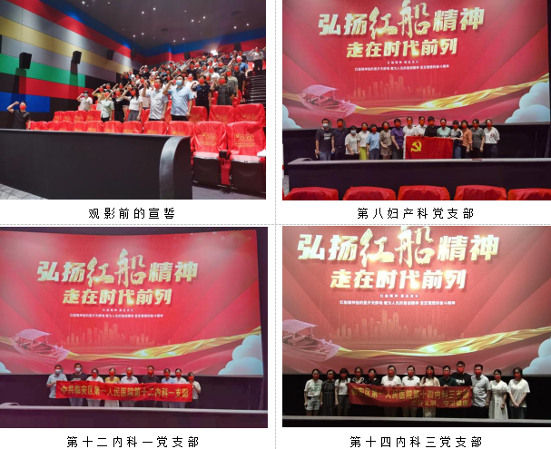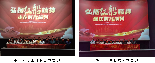 第八妇产科党支部、第十二内科一党支部、第十四内科三党支部、第十五感染科联合党支部和第十六城西院区党支部联合观看红色电影——《红船》。党员们通过观看电影,更深刻地了解了中国共产党百年的历史,从“红船”中挖掘不竭的力量源泉。