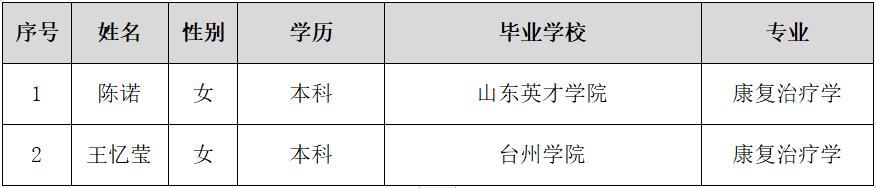 根据杭州市临安区第一人民医院2025年度第一批招聘考试结果,确定以下2位考生为我院拟录用人员。现进入体检环节,公示如下: