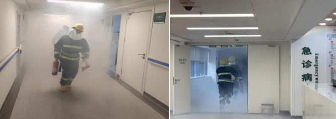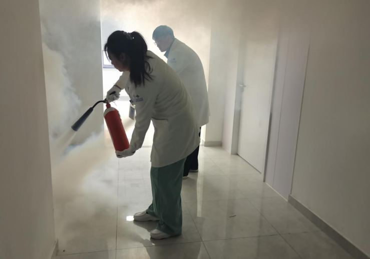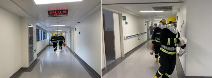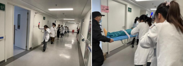 下午15:00,我院安防消监控中心的消防警铃骤然骤然响起,监控中心值班员通过火灾自动系统联动设备确定“火情”地点——病案统计室,同一时间接到病案统计室医护人员的报警电话,值班员立即启动《临安区第一人民医院消防应急疏散救援预案》,通过消防智慧平台对“火情”进行处理。警铃一响,该楼层工作人员迅速反应,开展自救,病案统计室、信息中心和急诊病房医护人员处变不惊,按预定路线将住院患者和贵重物品进行安全转移,微型消防站救援队员3分钟内赶到现场协助疏散,疏散组通过专人手持消防用荧光棒在疏散通道进行指引,撤退有条不紊。区消防救援大队消防车也在第一时间抵达,消防队员精准操作,火势迅速被扑灭。